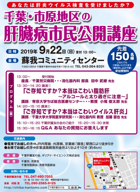 「千葉・市原地区の肝臓病市民公開講座」開催のお知らせ(9月22日(日))